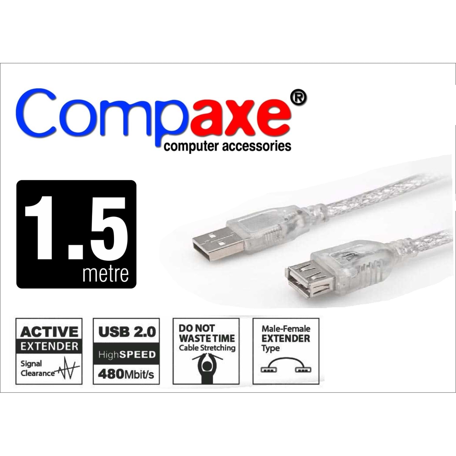 COMPAXE CUK150 1.5M ŞEFFAF FİLT. USB UZATMA KABLO
